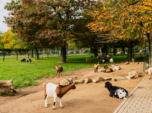 Die "Ziegenwiese" nach dem Haupteingang mit den lebhaften Afrikanischen Zwergziegen und den Alpakas begeistert vor allem die jungen Zoobesucher. Beim Füttern von Waschmöhren, die an der Kasse erhältlich sind, und Heupellets aus den Futterautomaten an der Anlage haben sie ein erstes haptisches Erleben mit der Tierwelt.