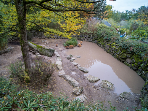 Direkten Einblick hat man in den Kral der Pinselohrschweine, bei denen häufig auch Nachwuchs zu sehen ist.